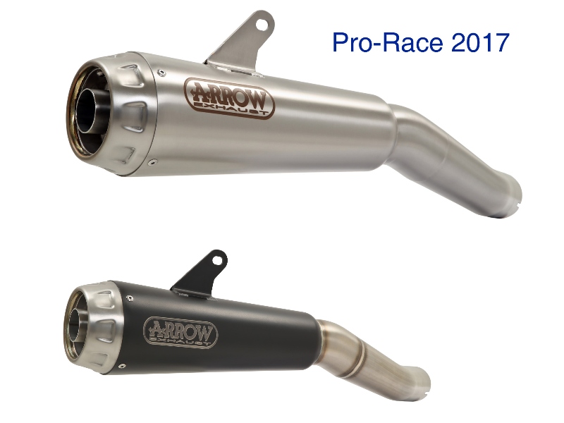 Pro-Race Pro-Race silencers design comes from the first prototypes made for MotoGP. Pro-Race silencers are built putting together a conical-shaped part (the main body of the silencer) with a cylindrical ending section (ø98mm) and these are available in titanium or nichrom (a stainless steel alloy). The silencers are secured to the bike by means of mounts welded to the main body, their cone-shaped design provides a reduction of dimensions and weight, but it also reduces the overall volume of the exhaust, thus limitating noise damping capabilities and the application on bigger or demanding engines. Pro-Race silencers are available both in a street legal and racing version, with removable baffle. Hier onder kunt u een demo film bekijken van ARROW op diverse Yamaha modellen