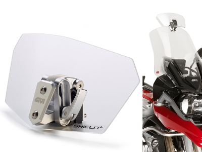 Givi spoiler. Deze is verstelbaar en wordt geplaatst op het bestaande windscherm voor extra bescherming tegen wind.
