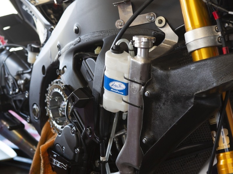 Opvangbakje voor koelvloeistof van Motion Pro, te bevestigen met tierips.