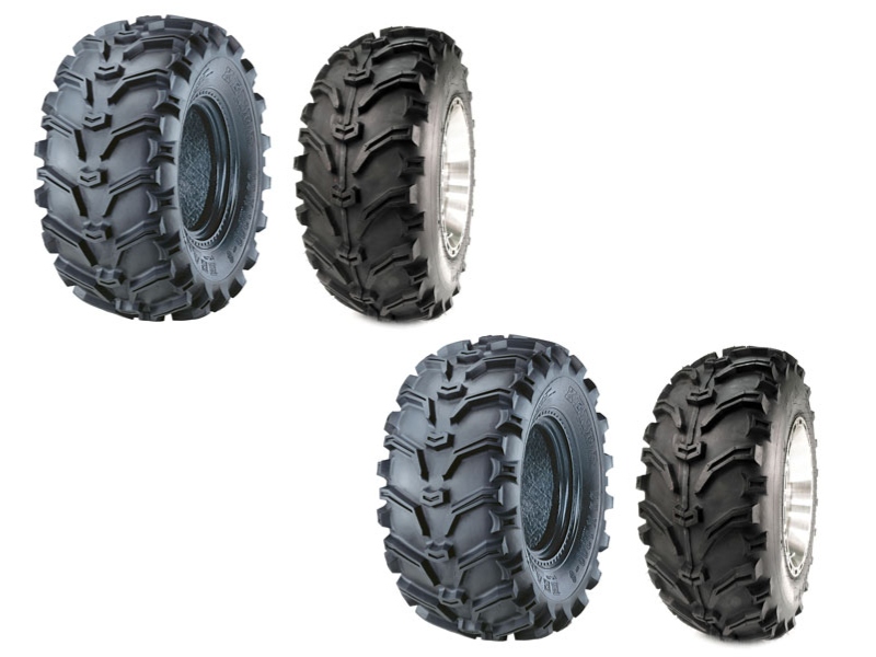 Complete bandenset voor de quad. De set bestaat uit 2 voorbanden 25 inch(hoogte) X 8 inch (breedte)-12"(velg) en 2 achterbanden 25"(hoogte) X 10"(breedte)-12"(velg).
