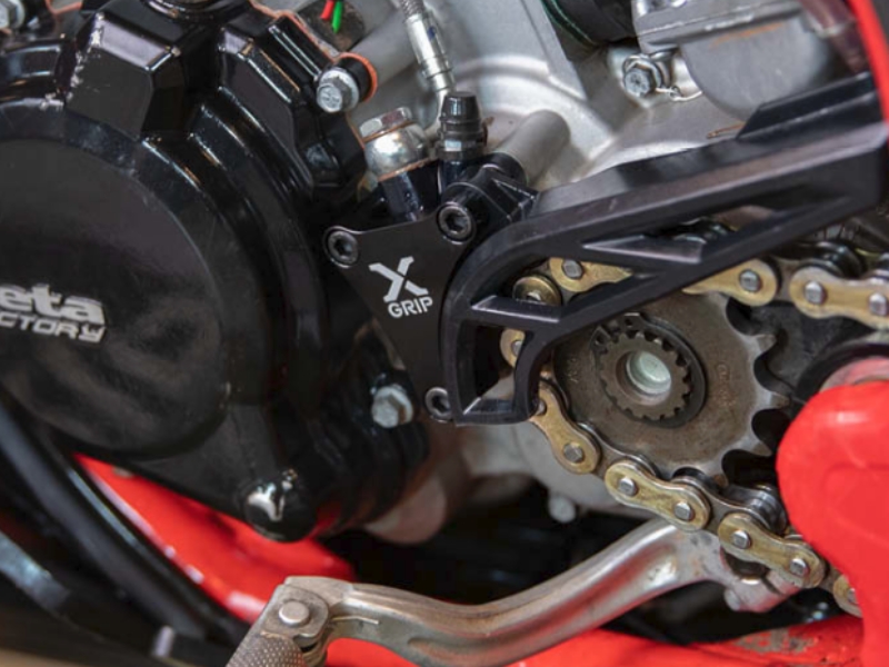 We developed the X-GRIP Clutch Slave Guard to optimally protect your clutch slave cylinder from damage. Made from a single piece of high-quality CNC-milled 6061-T6 aluminum, it provides reliable protection against external impacts such as falls or chain breakage. This lightweight and sturdy part is available in two anodized colours. With our Clutch Slave Guard, you not only avoid annoying damage but also expensive repairs!